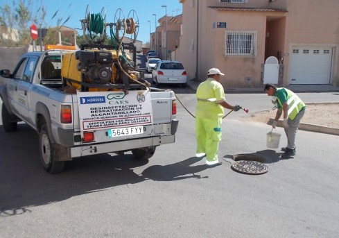 HIDROGEA, en coordinación con el Excmo. Ayuntamiento de Cartagena, realiza la desinsectación de más de 1.000 km de redes, 10.405 imbornales y 21.465 pozos de registro. Este año se ha incorporado la red de alcantarillado de Los Camachos y algunas urbanizaciones del término municipal.